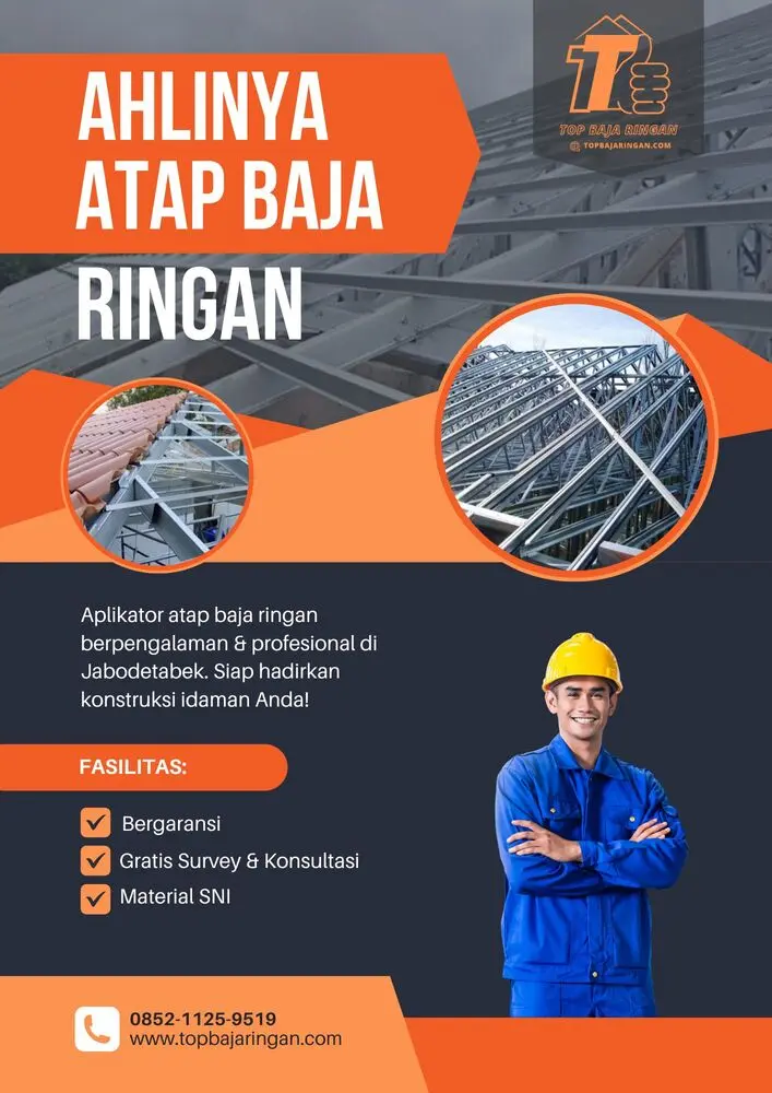 Top Baja Ringan adalah penyedia jasa konstruksi baja ringan. Fokus kami pada jasa pemasangan atap rumah baja ringan, pasang kanopi baja ringan, serta pemasangan plafon PVC / Gypsum.